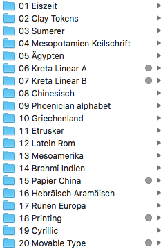 @Peter: Ich hatte es ins Deutsche mit "Schriftsysteme" übersetzt, um keine Verwirrung aufkommen zu lassen. In meiner eigentlichen Arbeit heißt dieser Teil "evolution of writing".