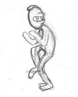 ich glaube aber, beim schleichen muss der rücken noch etwas mehr gekrümmt und nach vorne geneigt sein. so etwa: