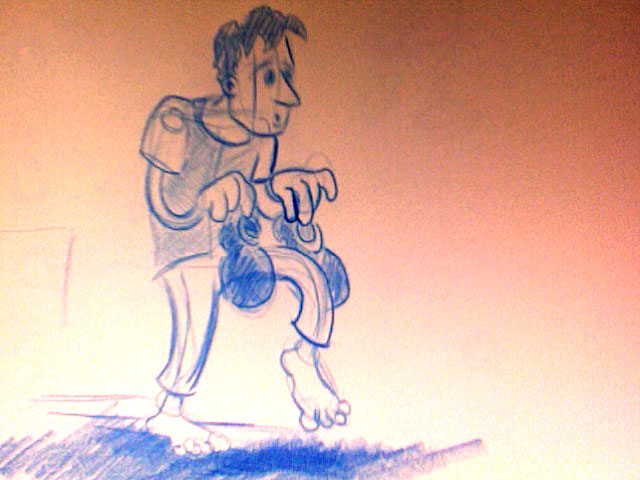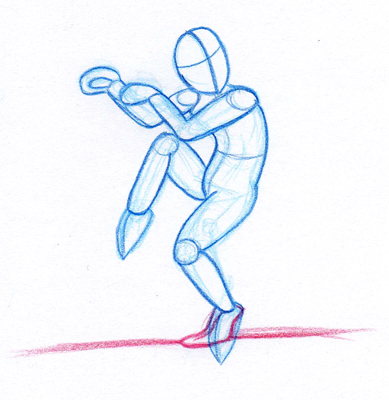 Du hast Dich zu sehr darauf konzentriert, schöne Formen zu haben - da hasste die Physik vollkommen ausser Acht gelassen. Das Männchen steht gar nicht auf dem Boden.