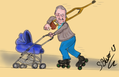 Ab und zu sehe ich Mütter oder Väter mit Inline Skates den Kinderwagen vor sich herschieben. Da dachte ich mir, dass doch lustig wäre, wenn ein Grossvater/Urgrossvater auch auf den Inline Skates mit seinen Enkeln durch die Gegend "surft". ;)
