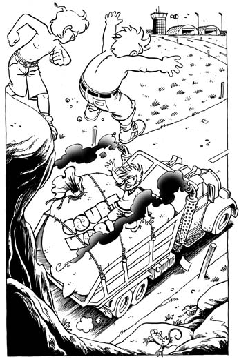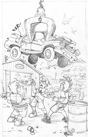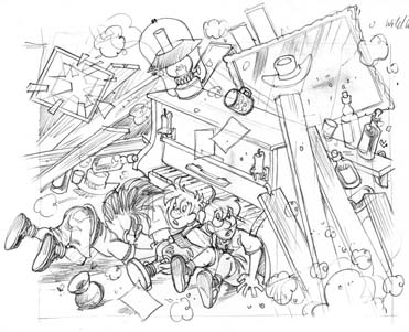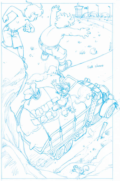 Ich scanne die skizzen dann ein, bearbeite Details etc. und drucke die dann in blau wieder aus. diese Blauskizze wird dann direkt getuscht. Danach wird das Ganze wieder eingescannt, wobei ich im Scanprogramm Blau als Blindfarbe definiert habe. so sieht der Scanner nur den schwarzen Strich. Fertig.