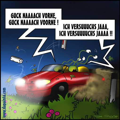 Muss schon sagen, die beiden Cartoons gefallen mir. Die heller Varainte des Cabrio-Cartoons finde ich auch besser als die dunkelere. Dort sah es aus, ob der Wagen stehen würde.