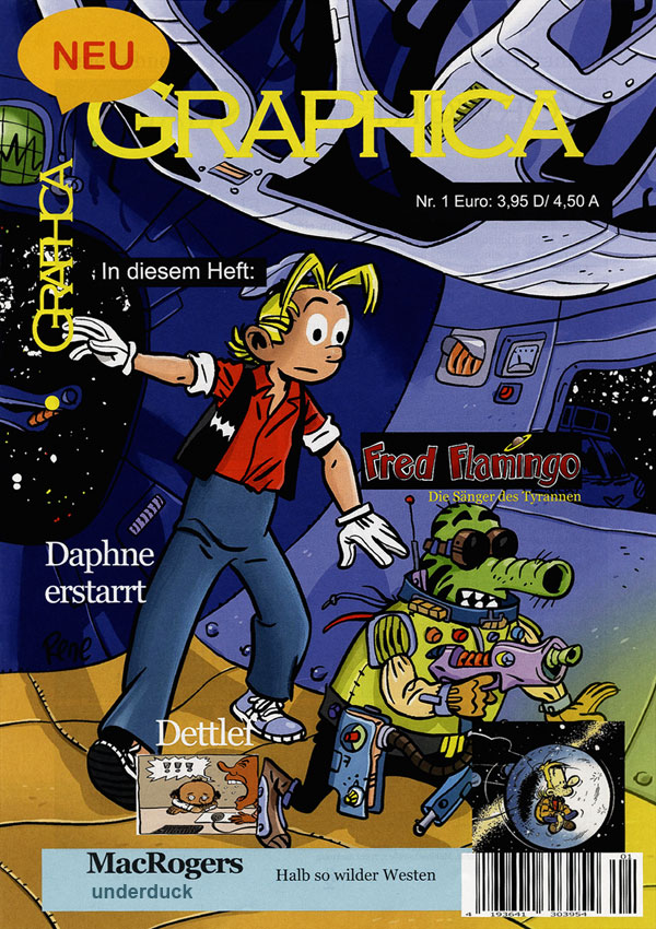 Es ist ein neues Comicmagazin namens "Graphica" gegründet worden, dessen erste Ausgabe, soviel ich höre, noch ein paar Kinderkrankheiten aufweist, aber professionell vertrieben wird. Jedenfalls im Rheinischen haben mir jetzt schon mehrere Comicfreunde mitgeteilt, daß sie so ein Heft erworben hätten. Sieben Seiten "Daphne" sind da erstmal drin. Ich hoffe, "Graphica" besteht so lange, daß alle 127 Seiten veröffentlicht werden können...