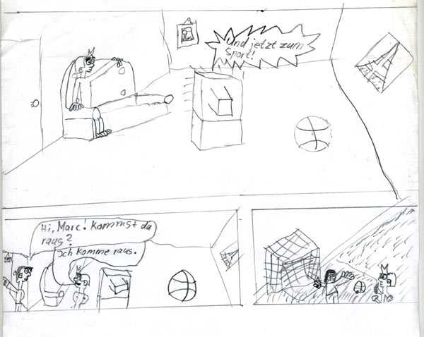 hier was von mir.......so hab ich früher immer gezeichnet. das stammt aus der 4.volksschule.(da war ich etwa 10 jahre alt) damals hab ich von fast allen meinen mitschülern kurze strips gemacht. der hier handelt von einem typen der schon im unverdorbenen alter von 10 verdorben war ;)