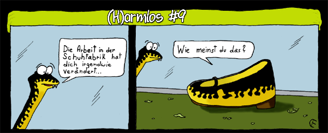 gefallen mir beide recht gut auch wenn die gags (wie du selbst schon sagtest) nicht soo die brüller sind... ich würde vielleicht mal versuchen die strips noch ein wenig abwechslungsreicher zu gestalten indem du zum beispiel nicht immer nur die köpfe zeigst sondern auch mal die kompletten schlangen (so wie du es im 2. strip schon angedeutet hast)...