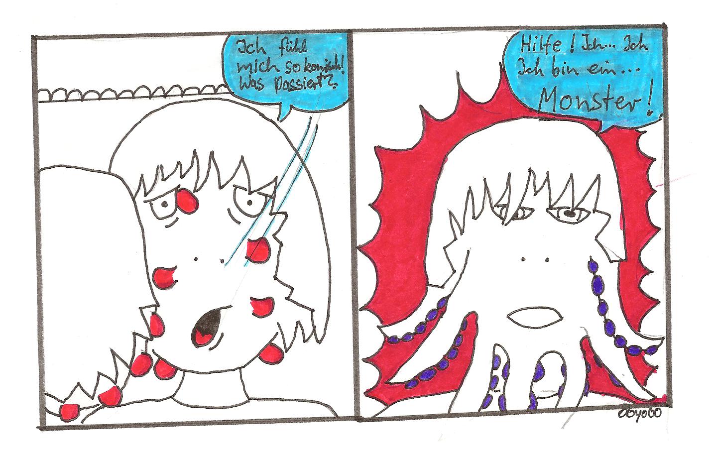In dem Teil von 00yo00 hat sie sich dann, nachdem sie sich "infizierte", in so ein Tentakel-Dingens verwandelt....