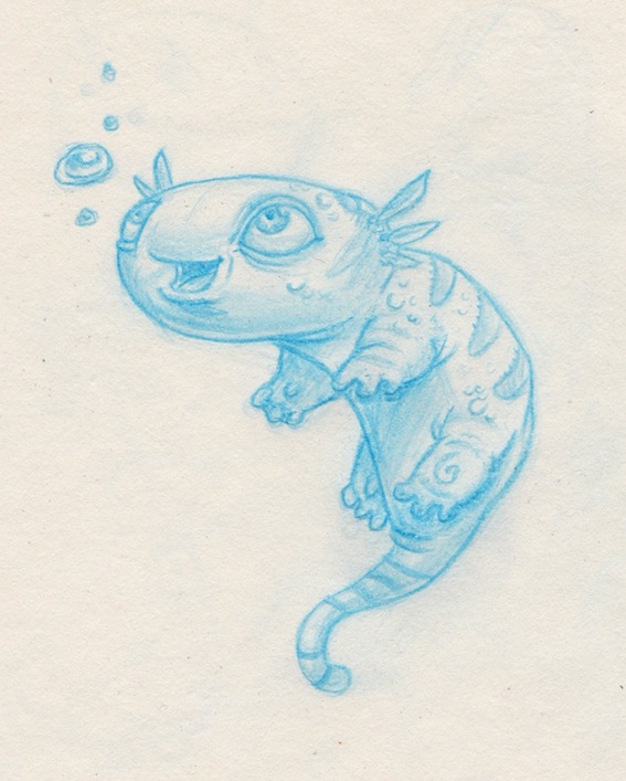 Ein Axolotl, ein Salamander, eine Eidechse, verschiedene Referenzen halt.Ist das ein Azolotl, oder wie die Viecher nochmal heissen?