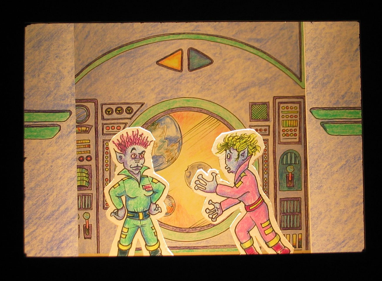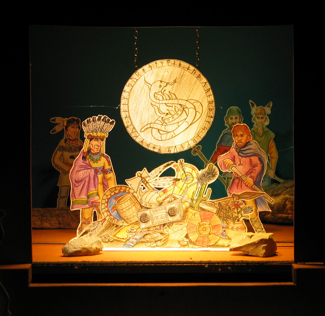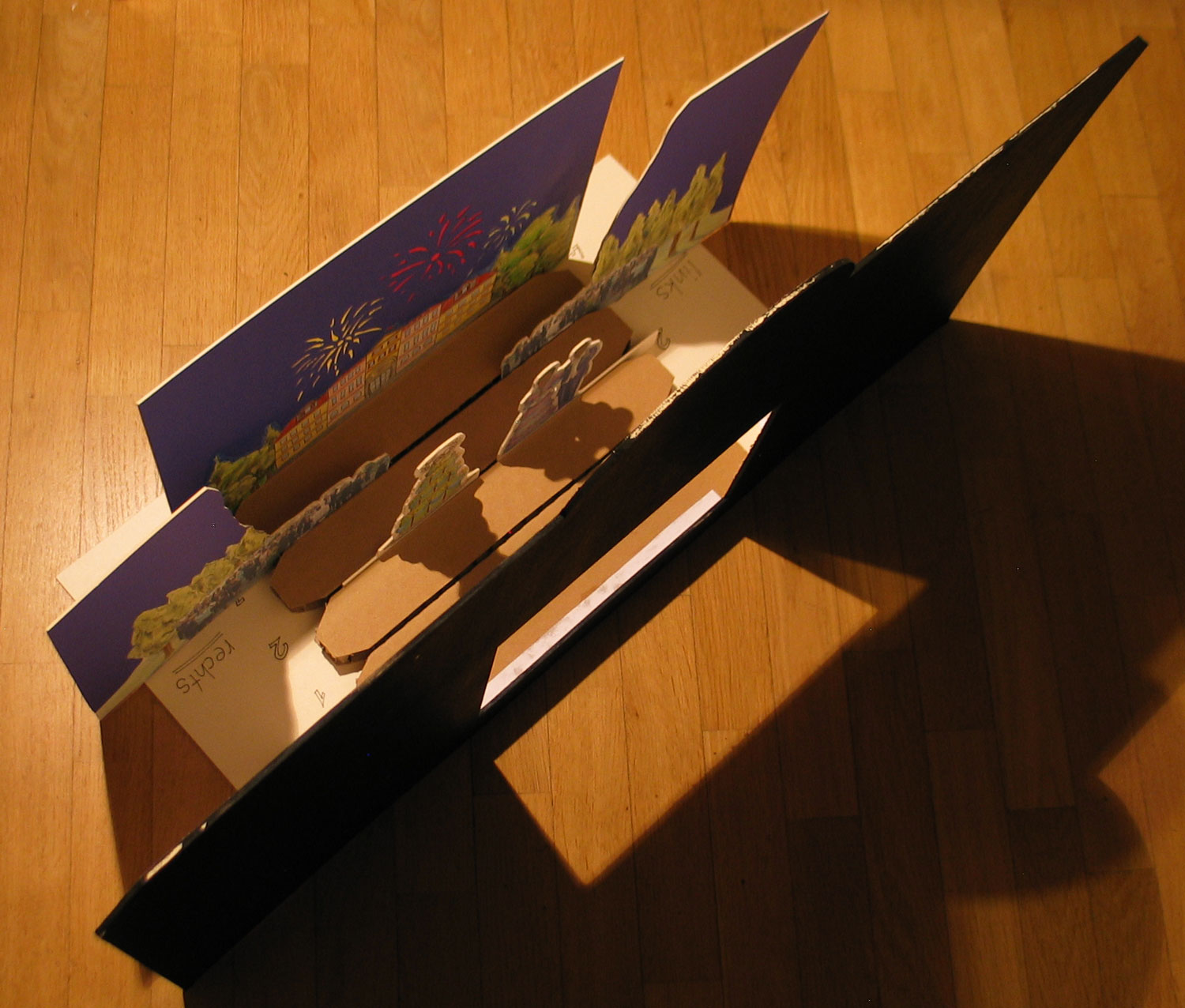 Es handel sich um eine Kulisse aus Papier, und da laufen starre Bilder in einer Folge ab. Dazu wurden Märchen gelesen. Ist also nicht so lebendig wie das Theater, das FrrFrr spielt, aber auch diese Form soll die Kinder fasziniert haben.