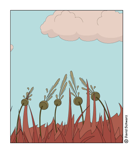 Je nachdem wie heftig die "Spritzer" aus den Pflanzen sind, könntest du diese mit Strichen intensivieren.