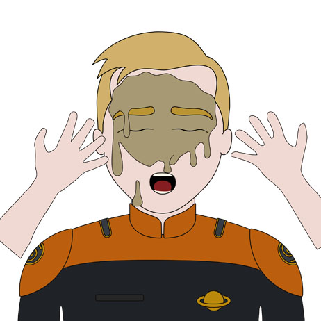 Ich arbeite immer noch daran, wie ich überzeugend Damian darstellen kann, während ihm die Pflanzen eine ätzende Flüssigkeit ins Gesicht spritzen. Hier eine Skizze: