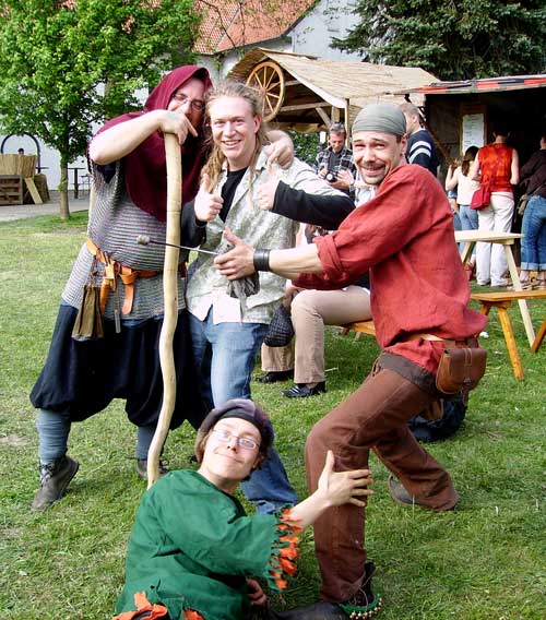 Little John ist ein sehr netter Bekannter, den ich auf diesen Mittelalter/Rittermarkt am Wochenende wiedergetroffen habe. Den kannte ich noch aus diversen Metalkneipen von früher (hach damals). Aber da hatte er andere Sachen an. Immer so T-Shirts mit Totenköpfen und bösen Bands drauf. So wie der Miguel ;). Bin nämlich mit meiner Mammi aufm Rittermarkt gewesen, habe Spanferkel vom Spieß und Steinofengebackenes Brot gegessen und mir ein LOTR-Arvins Schwert Brieföffner für sechs Silbertaler gekauft. Jetzt kann ich Briefe aufmachen, da träumt der Sauron von. Die Mahnung ist quasi schon geöffnet, bevor die Rechnung da ist.