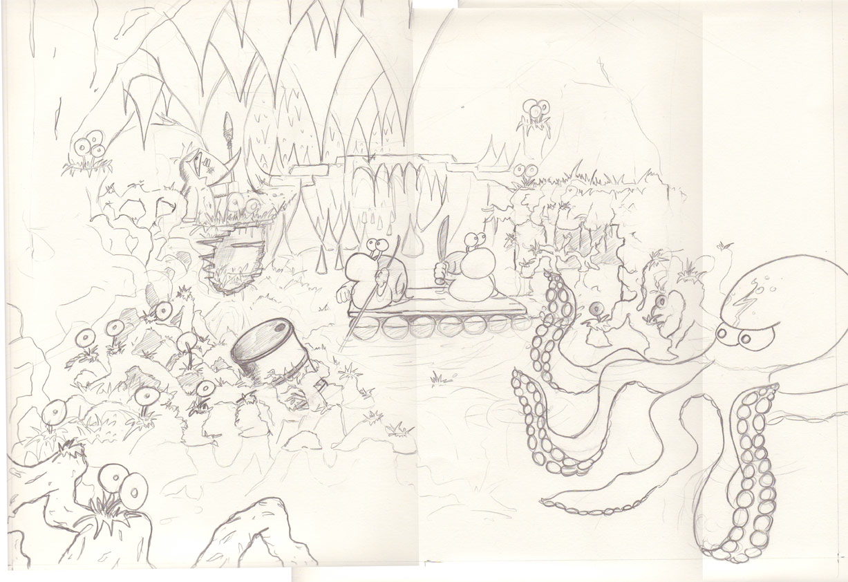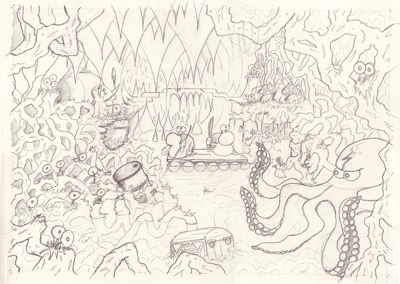 Schöne Zeichnung, bin schon gespannt wie es koloriert ausschaut. Allerdings würde ich drauf achten das Bild nicht mit Details zu überfrachten. Lieber mal die eine oder andere Knolle nur andeuten oder bestimmte bereiche gleich "frei" lassen. Wie sagt Bob Ross so schön? "This makes your picture deep" -Oder so. :P