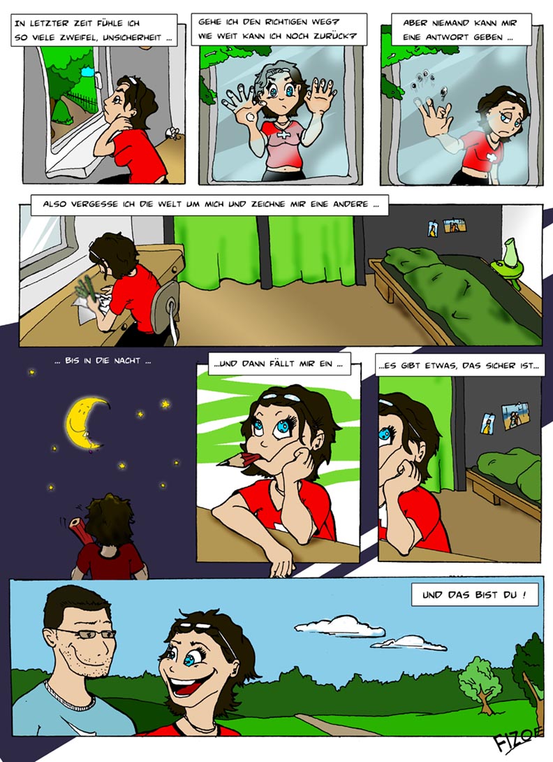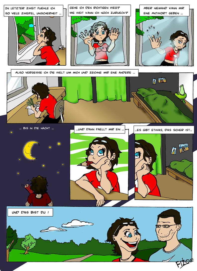 Thema ist etwas kitschig, aber ist nun mal für meinen Freund als kleine Überraschung, weil er mich eben inspiriert und weil er es wert ist, über ihn zu zeichnen :) Also ein Softcomic ;)