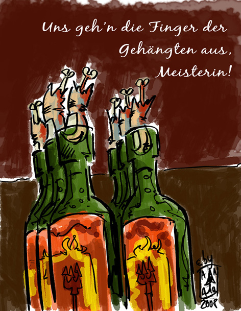 Graymen, zu schön! Und die künstlerisch ansprechenden Flaschen! Ich schick die Teufelchen sofort Nachschub für die Korken holen! :D