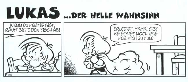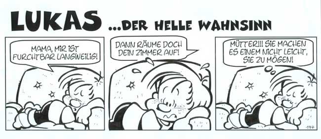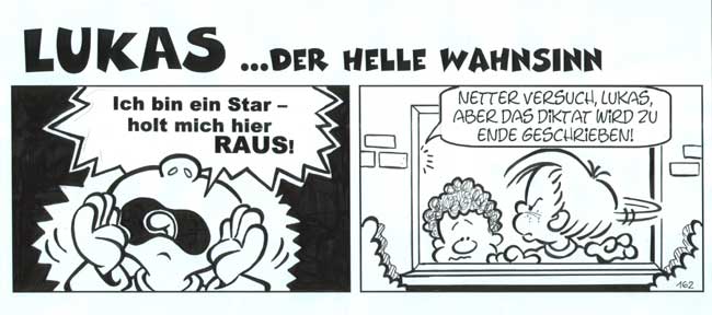 Tja, ein LUKAS-Buch wäre natürlich klasse. Strips und One-Pager hätte ich wahrscheinlich genug für zwei oder drei Bücher zusammen. Aber wie komme ich an einen Verlag, der das Thema aufgreift? Any Ideas?