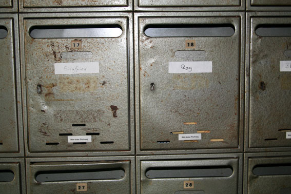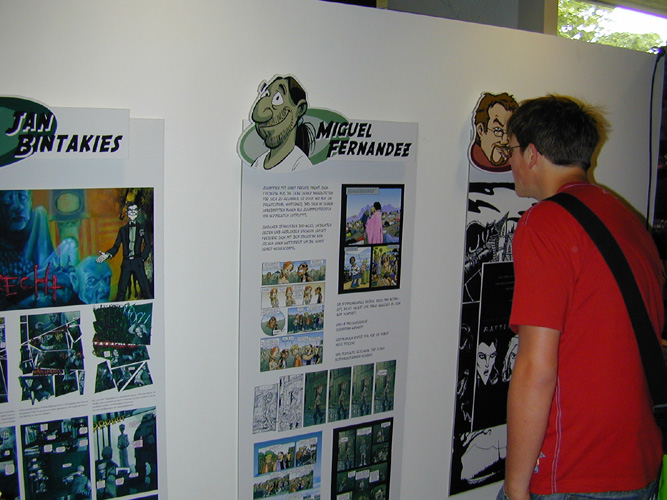 Hatten wir sowas schon? Felix begutachtet die Tafeln, die im oberen Stockwerk aushängen und Arbeitsproben von Jan B. sowie Miguel F. präsentieren.