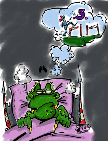 Die Zeichnung find ich gut, aber die Farbe des Drachens ist mir zu grell, die passt irgendwie nicht zu den übrigen Farben.