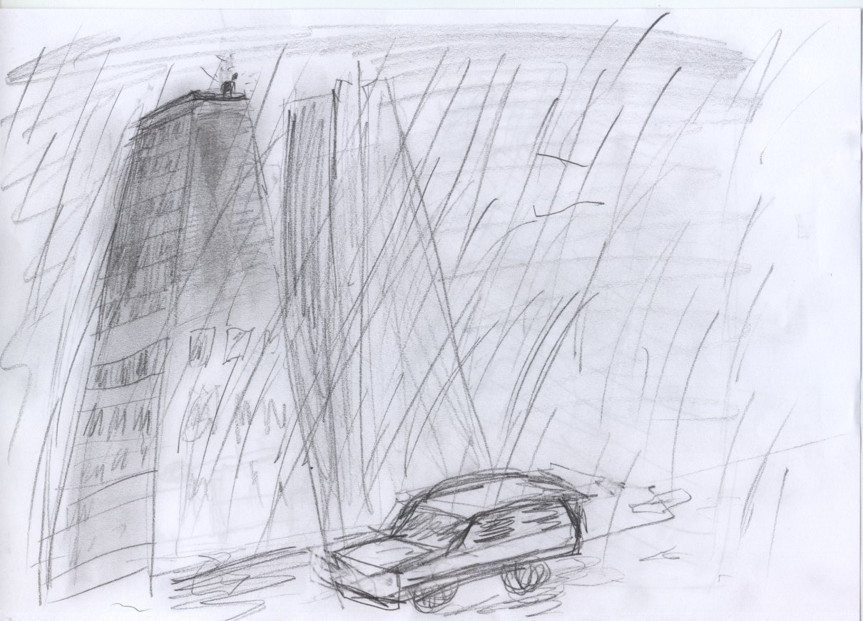 2. Bild:: stimmungsbild mit regen und einem der oben auf dem hochhaus steht und springen will... manchmal hat man echt das gefühl, das keben ist sinnlos...