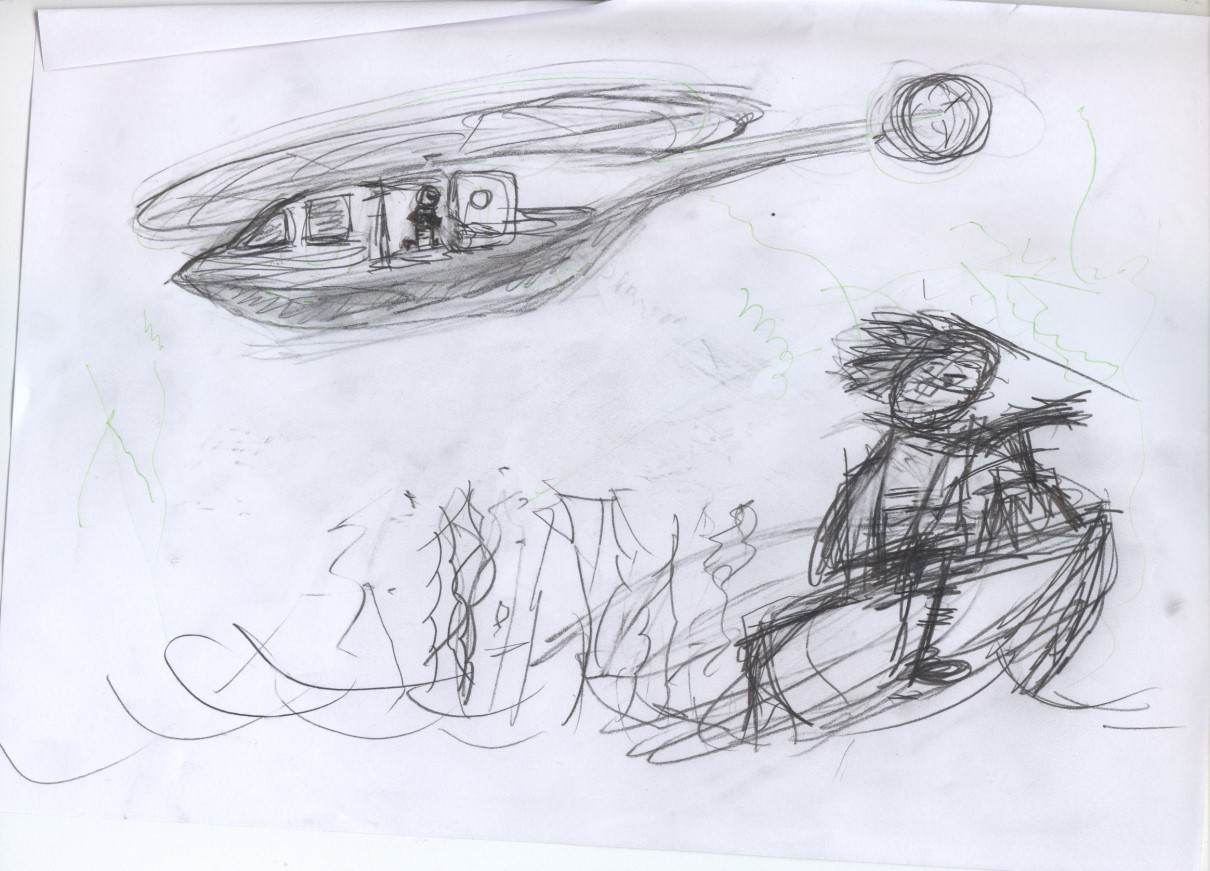 Außerdem setz dich einmal jeden Tag vor ein Blatt Papier und kritzle/scribble/skizziere es mit Figuren/Dingen, die dir spontan aus dem Stift fließen.