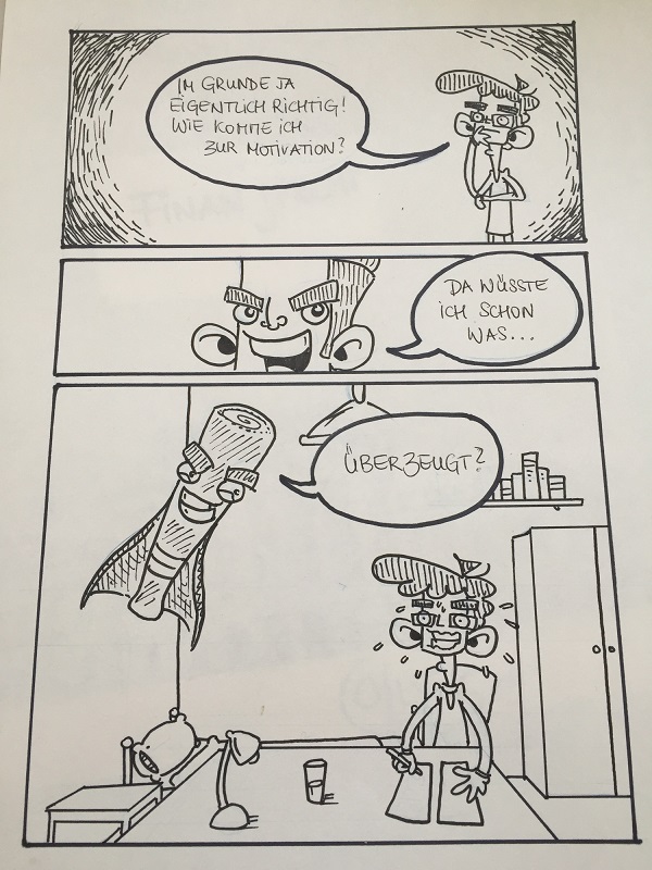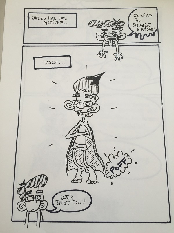 Dankeschön! Das Thema selbst war zum Teil vorgegeben, da hatte ich einen gewissen zeichnerischen Rahmen einzuhalten gehabt! Aber trotzdem danke!Finde ich in Gestaltung und Dialogführung gut. Das Thema finde ich nicht so toll - aber ich muß zugeben, als ich jünger war, habe ich auch am liebsten mich selbst und meine verschiedenen Befindlichkeiten bespiegelt (inzwischen nur noch mich selbst).