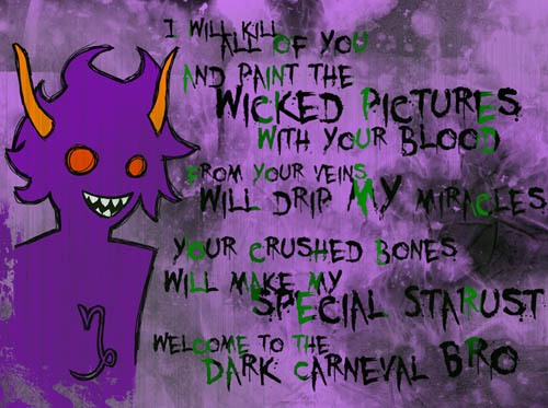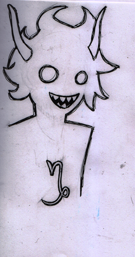 Auf jeden Fall hatte ich das Gefühl, ich müsse Gamzee, welcher zu der Zeit tatsächlich einer der Hauptbösewichte war (weil Nüchtern), zeichnen und diese eine Passage, in zensierter Form, daneben setzen.