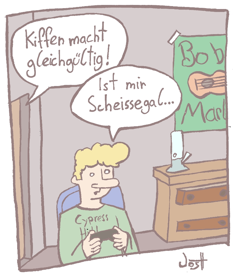 Den Kiffer-CArtoon gibt's leider schon in ähnlicher Form... hier