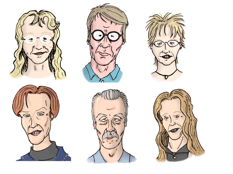 Das hier jedenfalls sind Karikaturen für eine Geburtstagskarte - leider nur für die lustig, die die Leute auch kennen :rolleyes: Davon abgesehen... mmmh, drei davon sind ehemalige Lehrer von mir (also jetzt ganz ohne gehässig zu werden, ne, aber ich hatte irgendwie schon meinen Spaß :D :D :D)