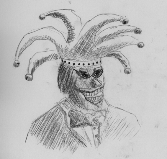 der joker dagegen gefällt mir gut - nicht ZU realistisch, so daß er immer noch comichaft wirkt. wenn du den mit fineliner nachzeichnest, so daß die kontraste noch stärker werden, hast du ein ziemlich gutes schwarz-weiß-bild. die nase könnte nach oben noch etwas länger sein, so sieht sie ein bisschen wie ein flaches dreieck aus. vielleicht liegt das aber auch an den schatten, keine ahnung.