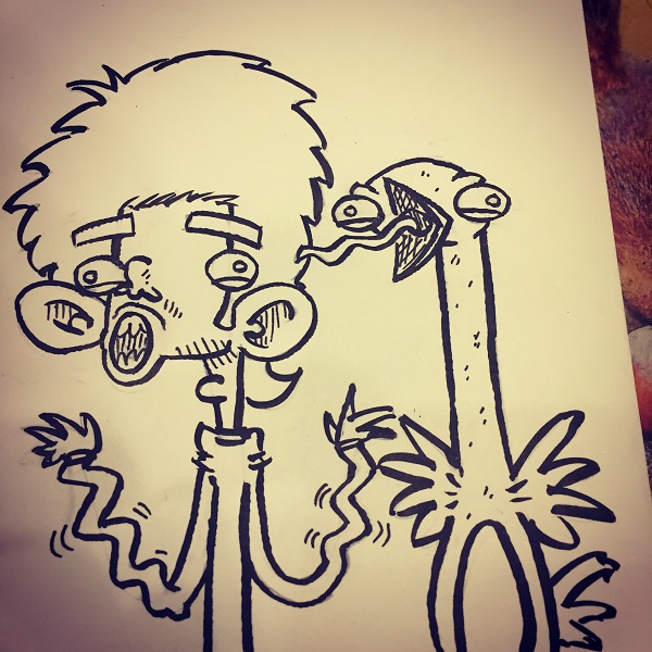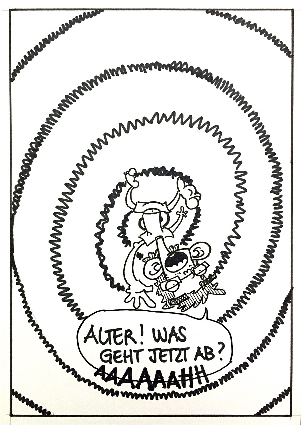 Finde ich immer wieder herrrlich, deinen Stil. Und ich glaube, der kann gut vom dynamischen Schwung der Tusche profitieren, denke ich. Man sieht zwar, dass du das noch nicht sehr routiniert machst, aber das kommt noch