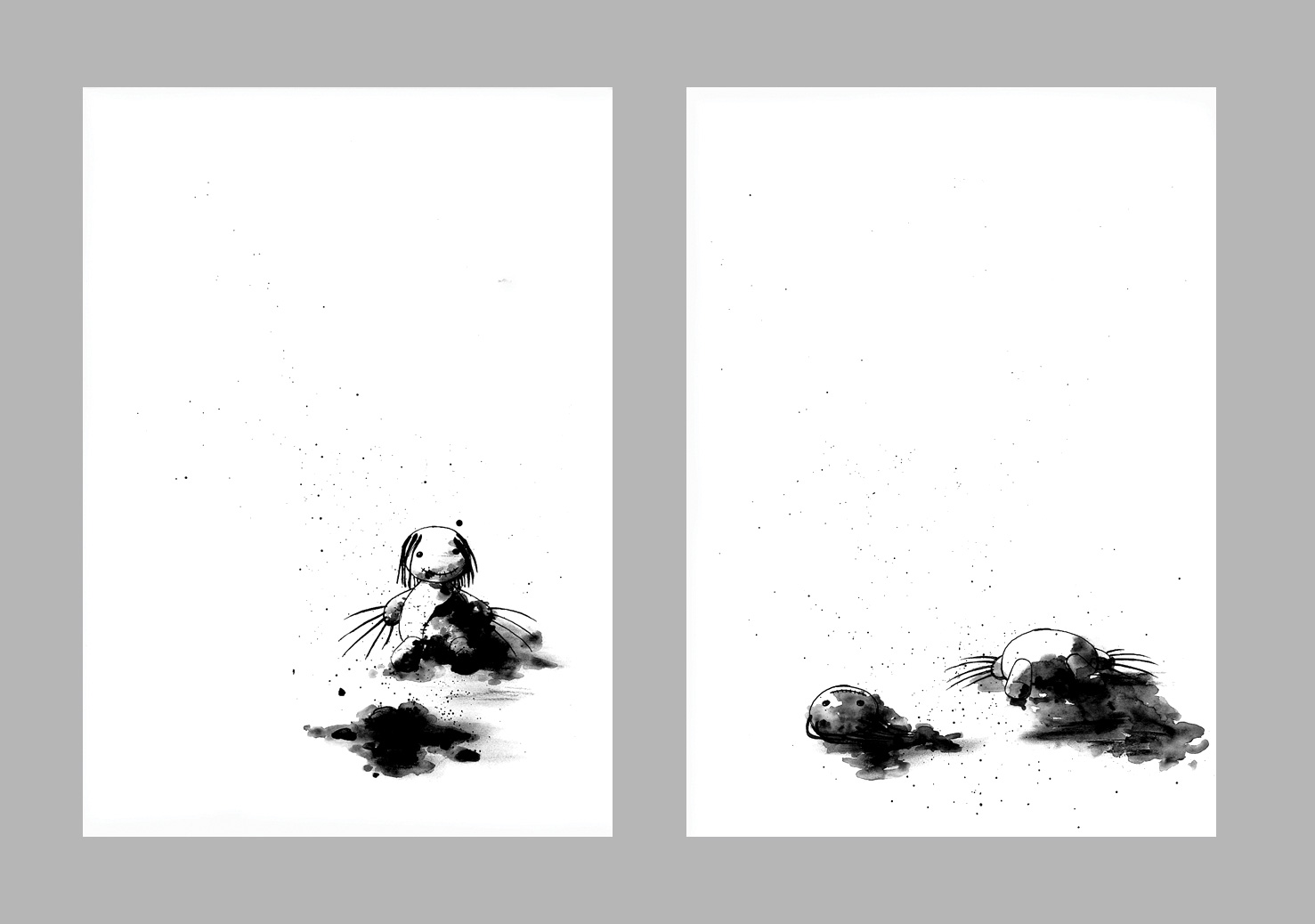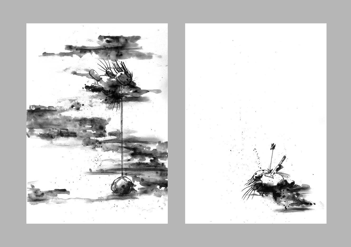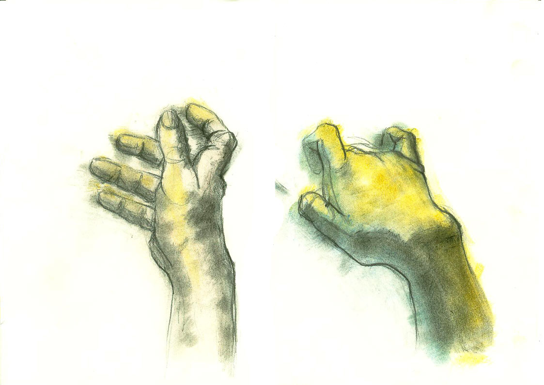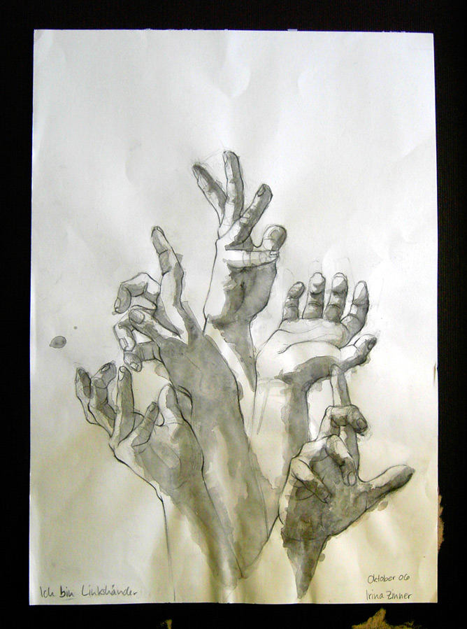 Bei der ersten Aufgabe, sah das Stillleben, das wir abzeichnen sollten so aus: Ein großer Tisch, ein paar Stühle kreuz und quer darum, ein Einkaufswagen mit zwei großen Papprollen und viiiiiel, viiiiiiiiiiel (noch mehr!) zeknülltes Papier (so ganz langes/breites) auf den Stühlen und dem Tisch drapiert. Die Zeit für die ersten Aufgaben war echt richtig heftig! Für die Bleistiftzeichnungen gerade mal 15 Minuten pro Blatt, da bleibt keine Zeit um großartig nachzudenken oder Fluchtpunke zu planen. Einfach alles durchziehen auch wenn es vor Fehlern nur so strotzt!