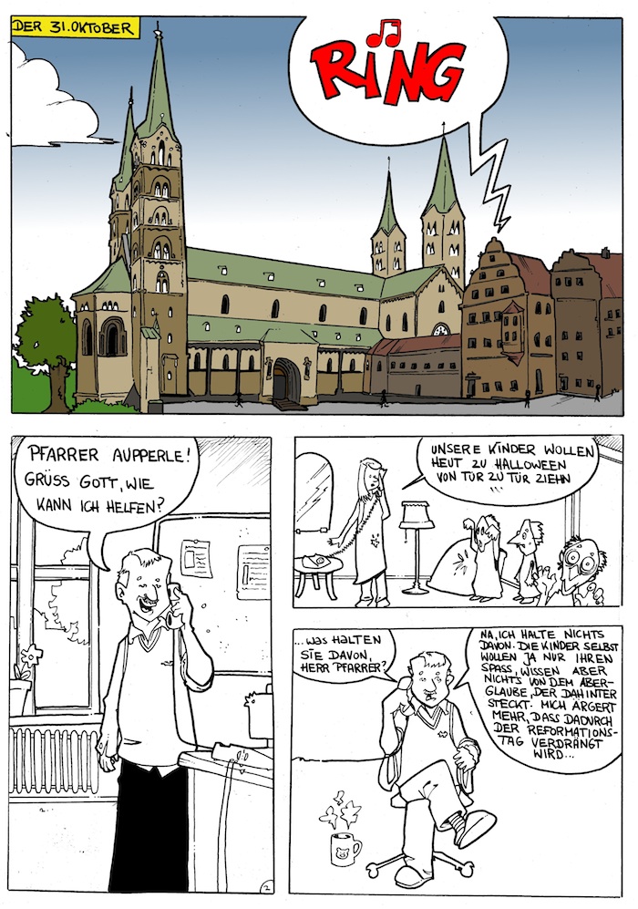 Hier mal die erste Seite in Rohfassung (ist für eine Lehrkraft, die den Reformationstag behandeln will, also der Tag an dem Halloween ist)