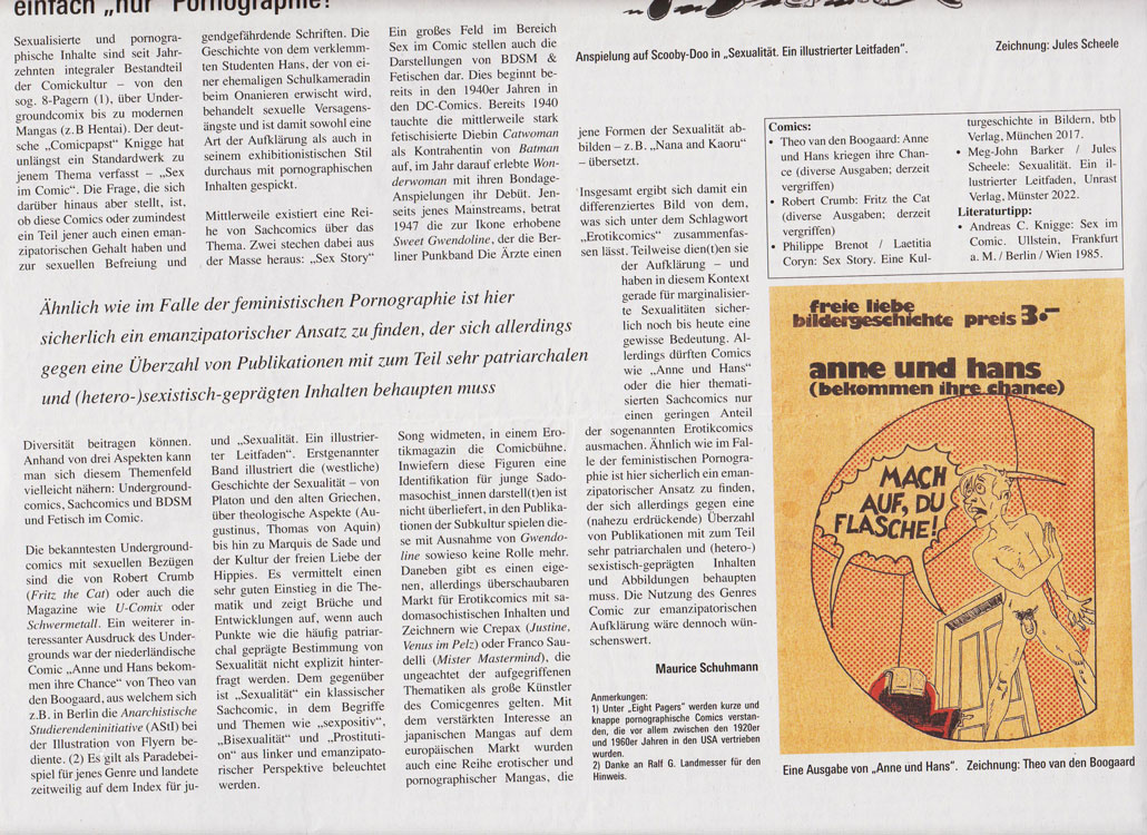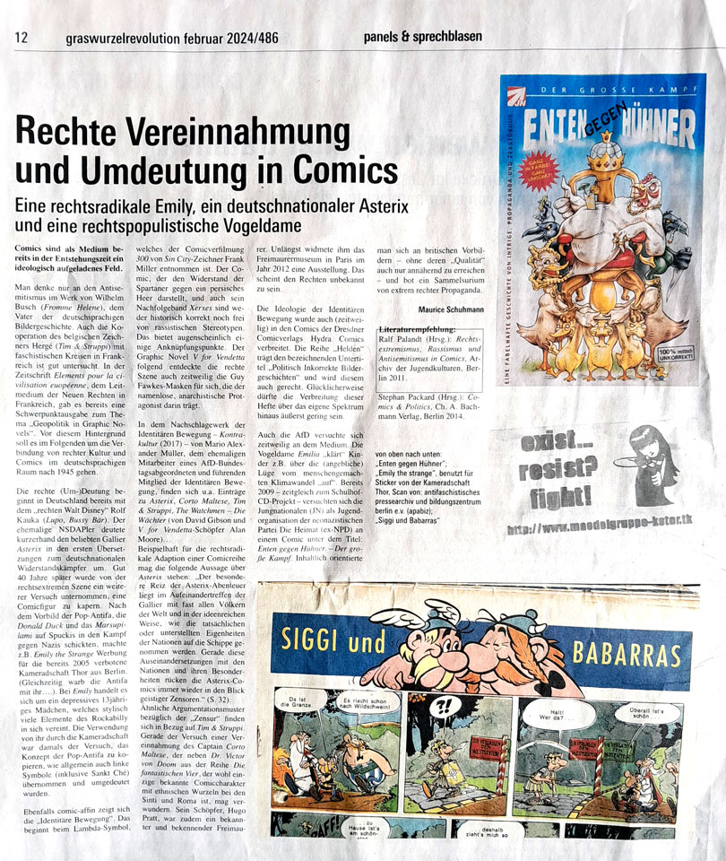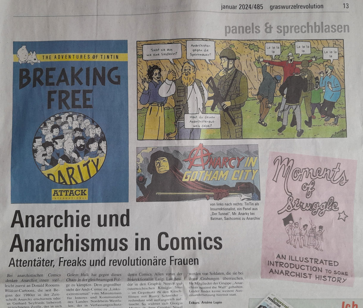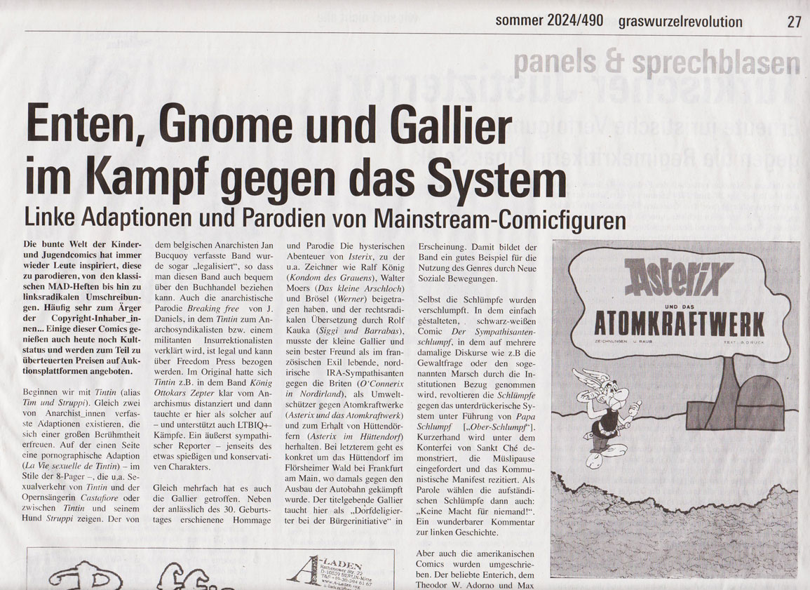 ...Und in der graswurzelrevolution sommer 2024 / 490 schreibt Maurice Schuhmann über linke Adaptionen und Parodien von Mainstream-Comicfiguren:
