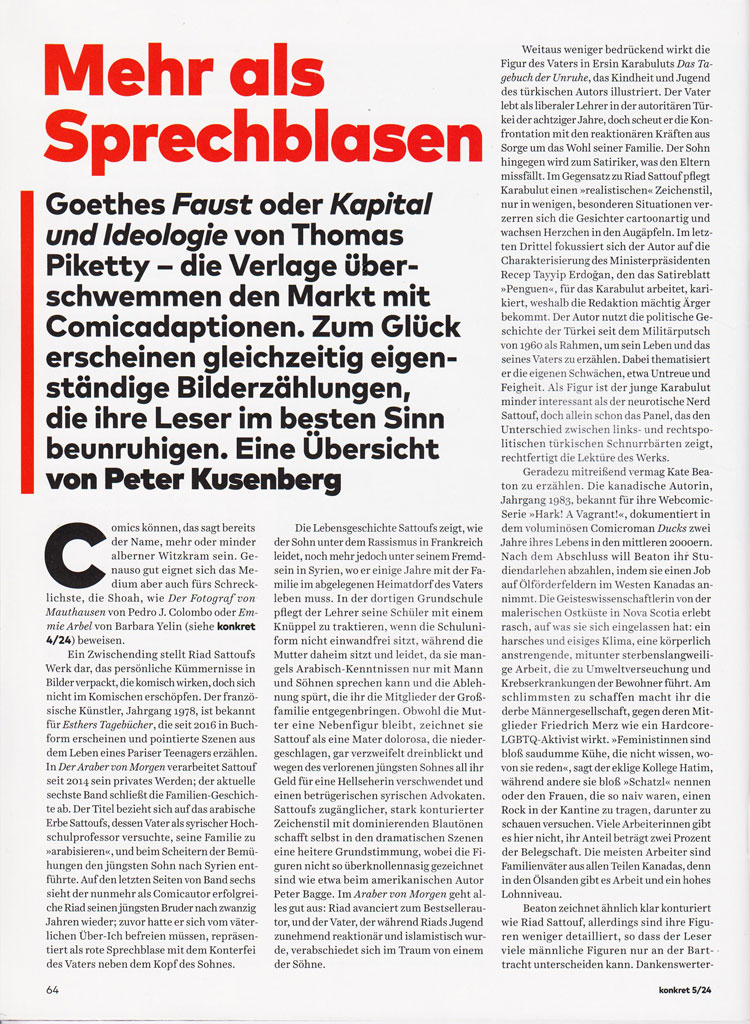 Ein Artikel über Comics in konkret 5/24 von Peter Kusenberg...