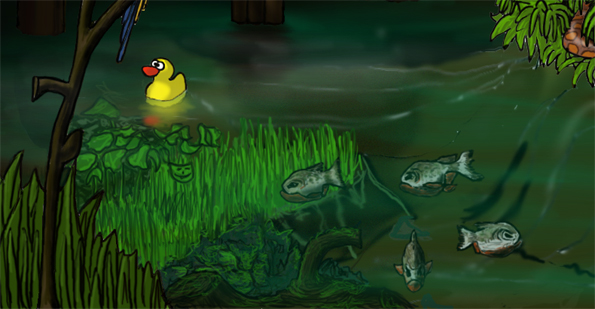 Ich poste gerade von einem anderen Computer aus und da wirkt alles etwas dünkler, wie ists bei euch, kann mann die GrashalmOutlines über dem Kroko sehen, die gehen bis knapp unter den Steg ???
