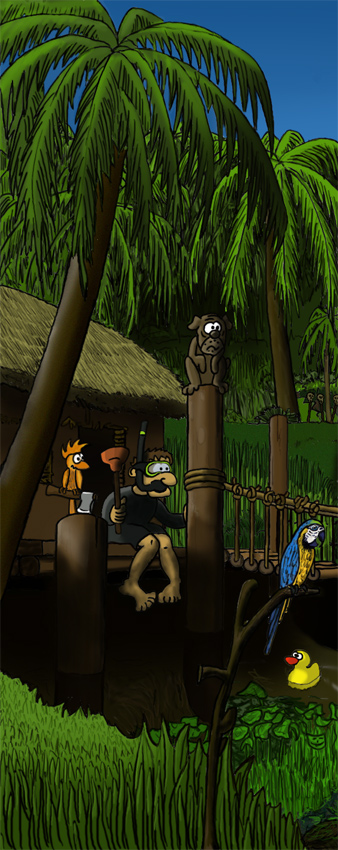 Na wie auch immer der linke Rand ist bis auf das Wasser unter dem Steg schon in der Endphase, aber viel wird sich hier vermutlich nicht mehr ändern :) Naja Schatten, die mittelgrosse Palme rechts und den Brückenpfahl hinten muss ich noch überarbeiten usw. eben ...bla bla bla....