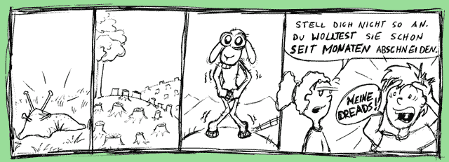 Der Comic zum Haare ab Thema ist ja geil! Die Schnecke sieht so echt aus. Wirklich gut. :thumbsup: