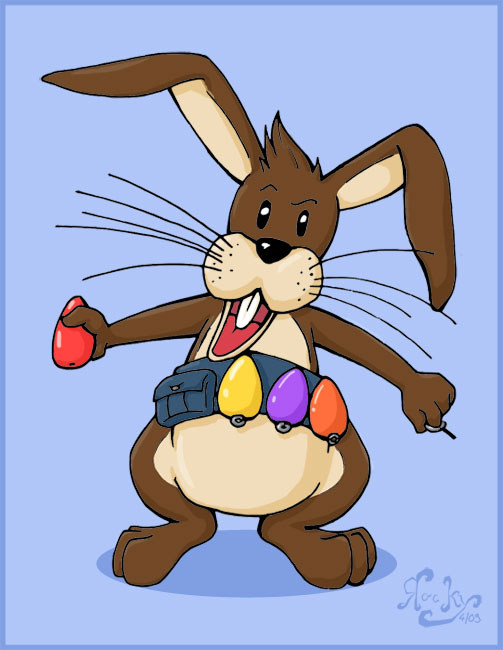 Waffe: seine Pfoten bzw Granaten getarnt als Ostereier