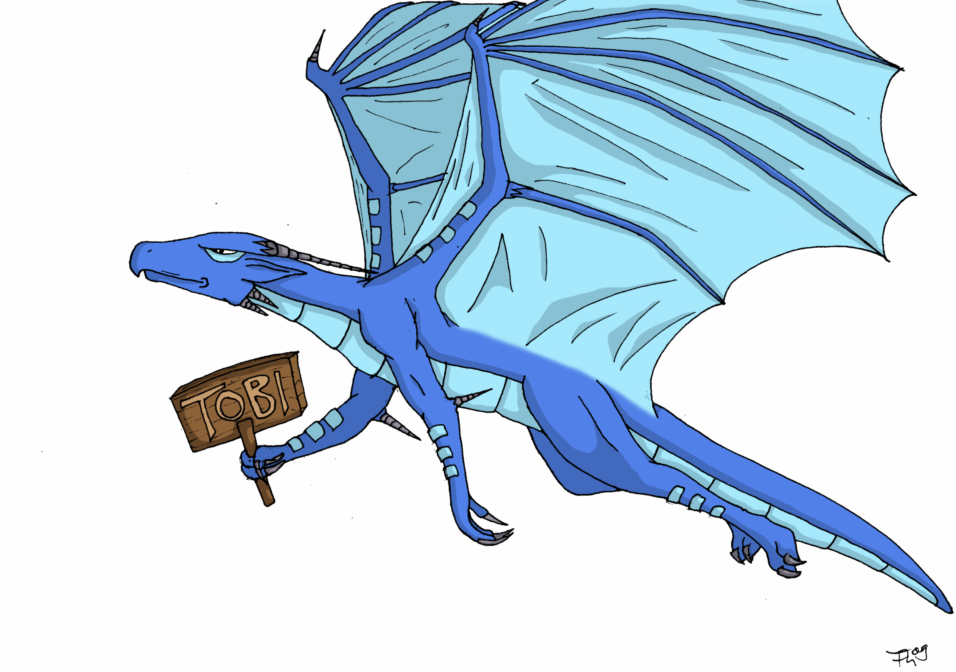 Der Drachen ist auch schön gezeichnet, ein Hintergrund mit Wolken oder so würde da find ich noch super aussehn ;)