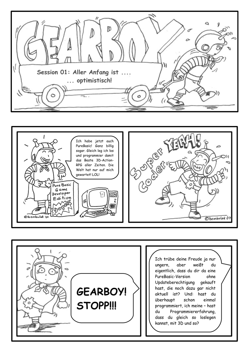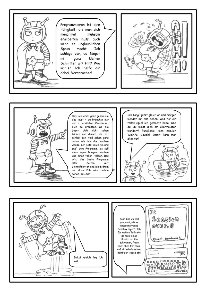 Unten stehend findet ihr das erste Comic von "Gearboy". Ich hatte das Ende 2007 gezeichnet. It's far from perfect, but at least it's complete. ;)