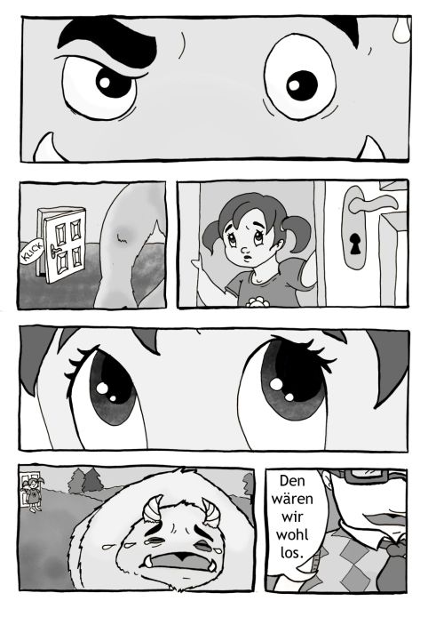 Ach ja: Das im zweiten Panel heißt "Merkwürdiges Ende".