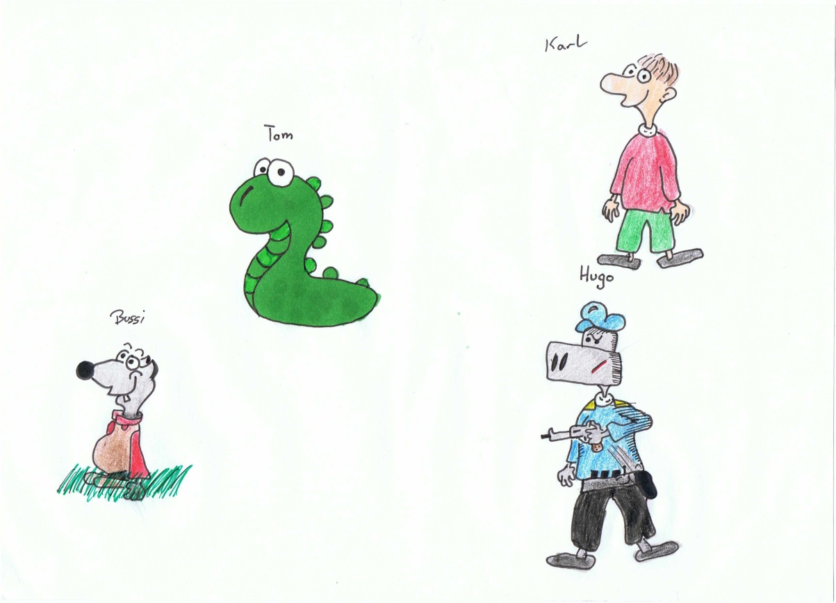 Mein kleiner Bruder ist jetzt auch voll im Comicfieber und hat 4 potentielle Comicfiguren aufgezeichnet. Ihr dürft nun abstimmen welche der Figuren ihr am besten findet. Dabei hat jeder von euch 2 Stimmen. Bitte Bitte stimmt für ihn ab.... :thumbsup: