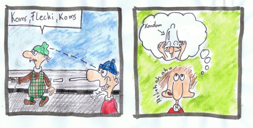 Ich find' die Comics auch super :) Aber ein Tipp: Versuch mal die Panel outlines (Diese Kästchen um die Bilder) mit einem schwärzeren Stift zu zeichnen und mit einem Linien, die sehen ziemlich kriggelig aus xD