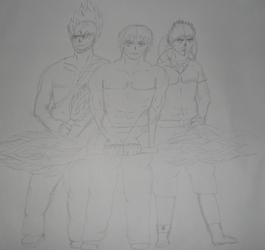 Bei dem letzen Bild mit der Dreiergruppe fallen mir massiv störend die Hände ins Auge(wenn sie die Hände in der Position halten sieht man nichts oder nur angedeutet etwas vom Handrücken) und der mitllere mit dem freien Oberkörper könnte bei freiem Oberkörper auch noch ein wenigstens angedeutetes Sixpack vertragen um ihn etwas muskülöser wirken zu lassen.
