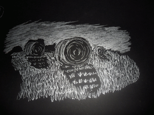 In einem Kapitel hat der Zeichner "Scraperboard" verwendet. Da ich aber keine Ahnung hab, was das genau ist, hab ich halt Tonpapier und Gelstift benutzt.