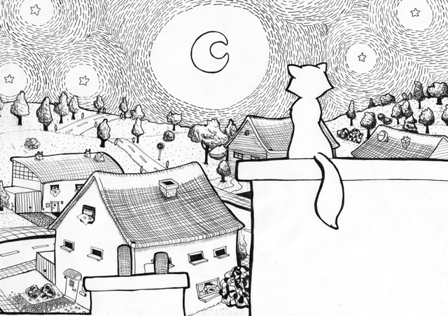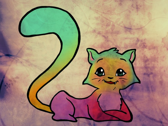 Hier die Katze hab ich schon vor Ewigkeiten gemacht und jetzt mal digital koloriert (mit Textur von hier).