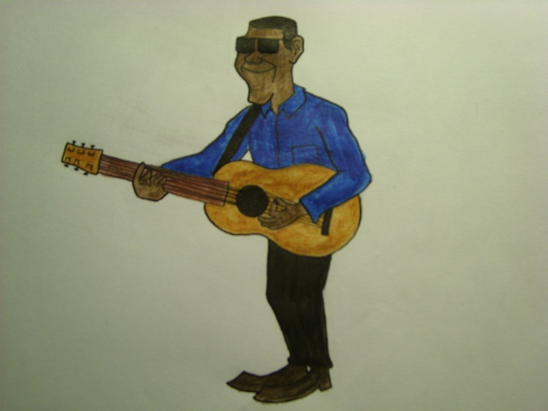 Der Gitarrist ist gut gelungen. Nur die Gitarre ist etwas unförmig geraten. Das Instrument ist meistens schlanker und auch etwas kleiner, meine ich.