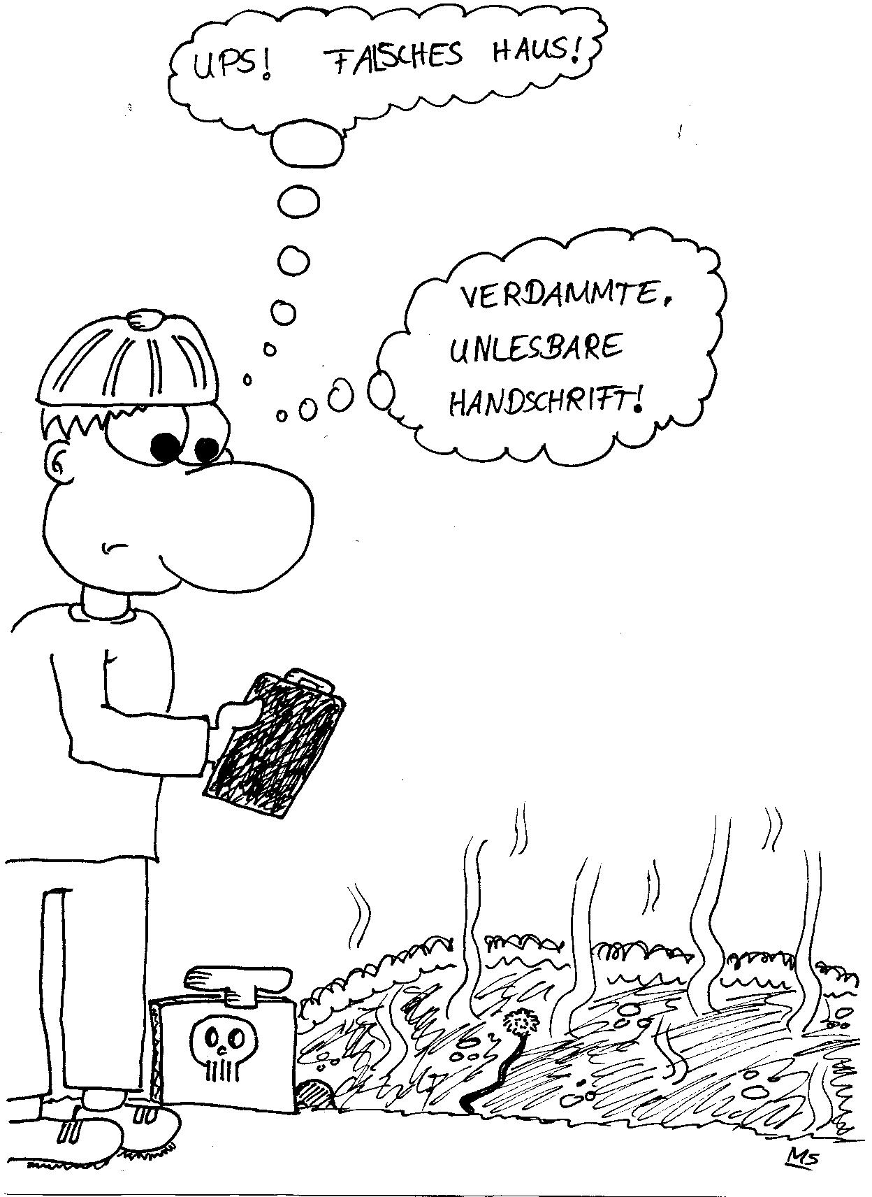 Ich hab' den Eindruck, Du läßt Dich immer von eigenen Erlebnissen inspirieren, M. S. Das ist gut; dabei kommt mehr raus, als wenn man einen Gag gedanklich konstruiert.