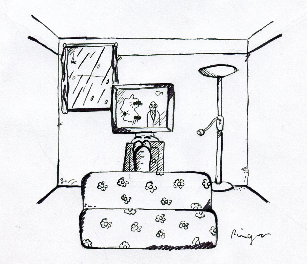Nur dass du leider bei der S/W Zeichnung, auf der du gespannt den Wetterbericht guckst nichts schattiert hast mit Grau oder so... Dann wäre die Perspektive schöner heraus gekommen :)