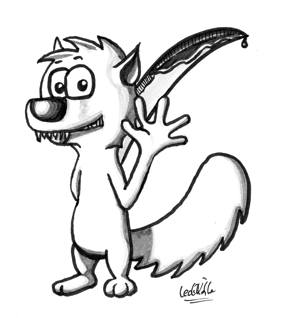 Also ich hab den kleinen Wolf nochmal ausgegraben und ihn gezeichnet. Ja, mir fällt auch auf, dass ich meinen Viechern immer Waffen in die Hand gebe...