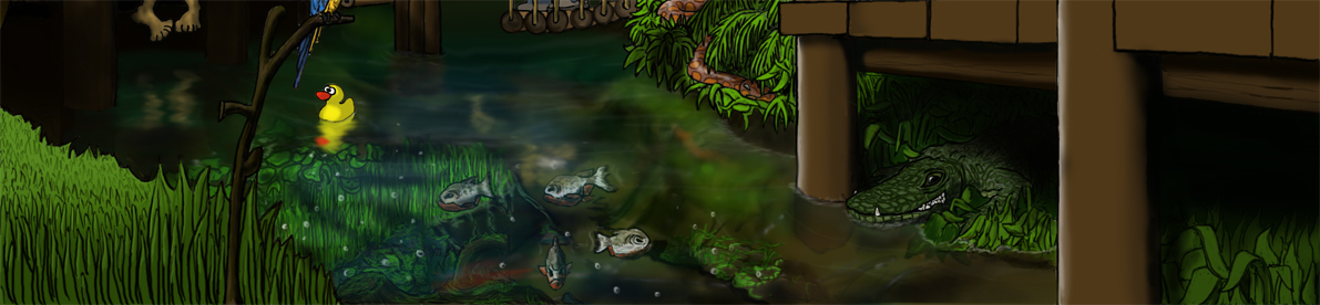 Ich poste gerade von einem anderen Computer aus und da wirkt alles etwas dünkler, wie ists bei euch, kann mann die GrashalmOutlines über dem Kroko sehen, die gehen bis knapp unter den Steg ???